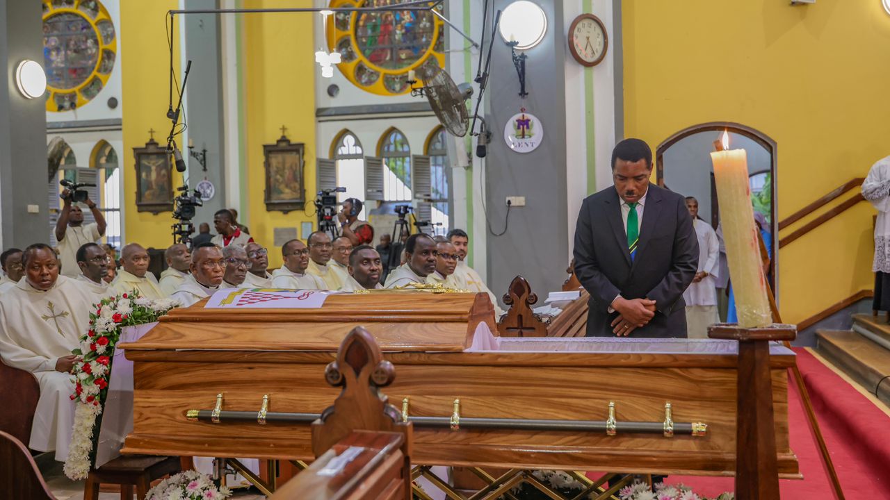 Waziri Mkuu, Dkt. Mwigulu Nchemba, leo Februari 28, 2026 ameshiriki mazishi ya Askofu Mkuu Mstaafu wa Jimbo Kuu Katoliki la Dar es Salaam, Marehemu Mwadhama Polycarp Kardinali Pengo, yaliyofanyika katika Kanisa la Hija ya Bikira Maria – Pugu, jijini Dar es Salaam.